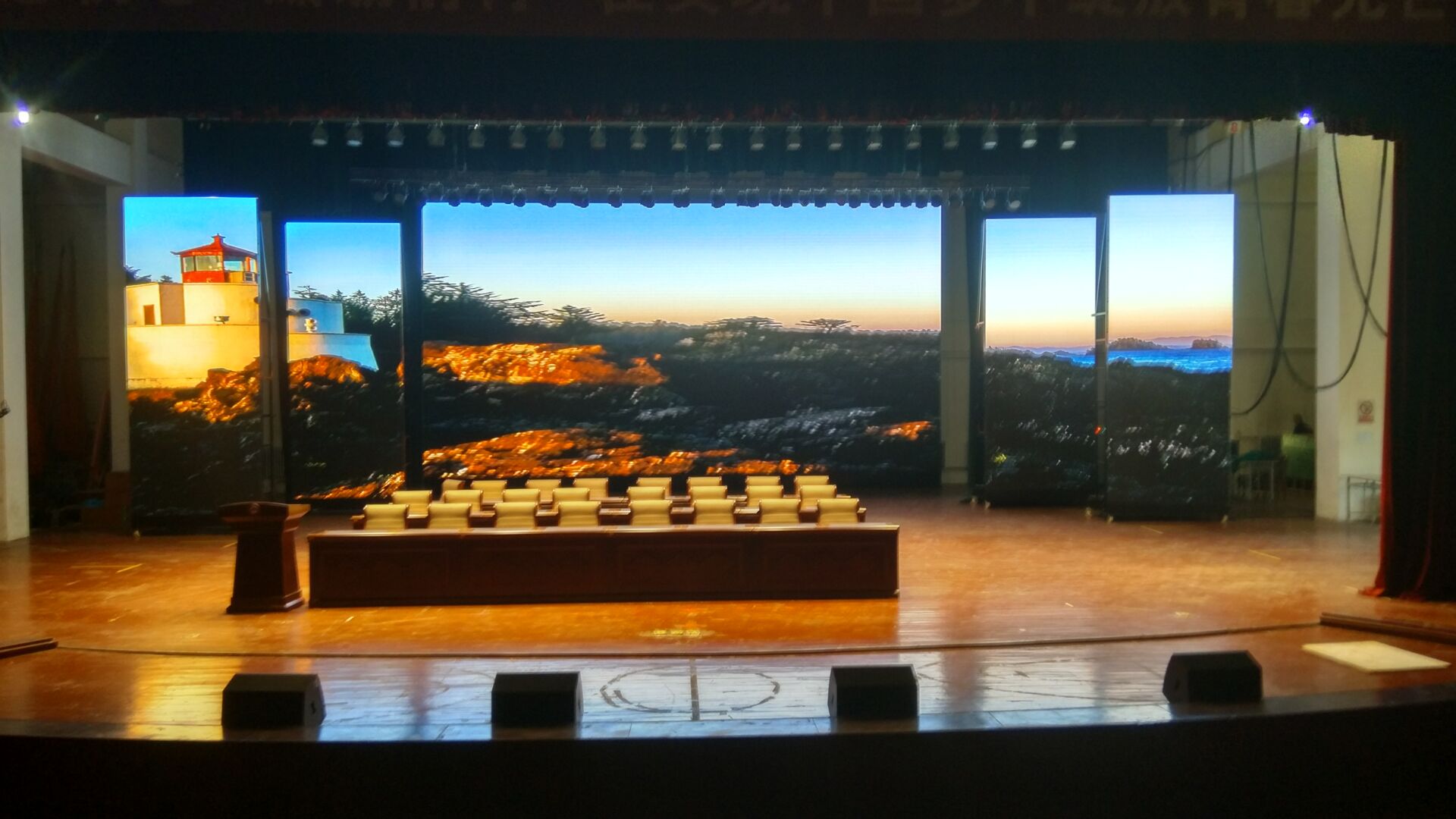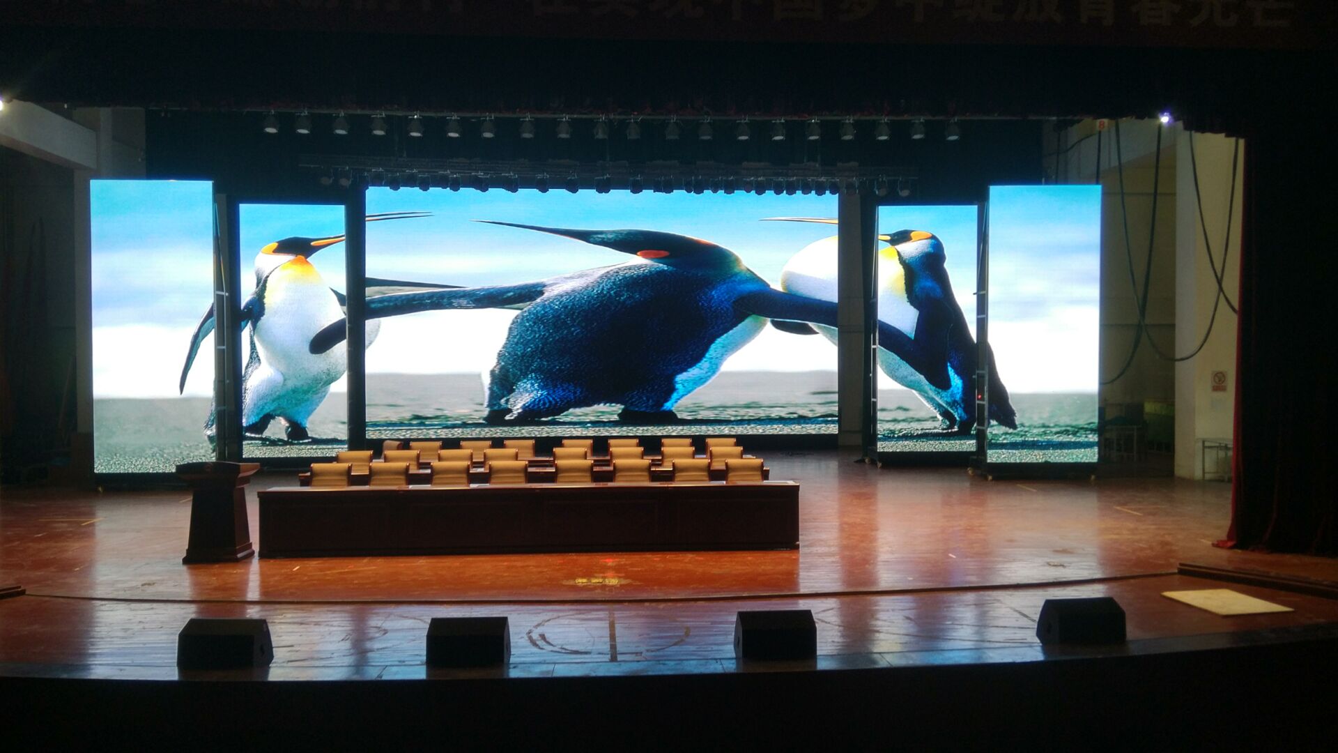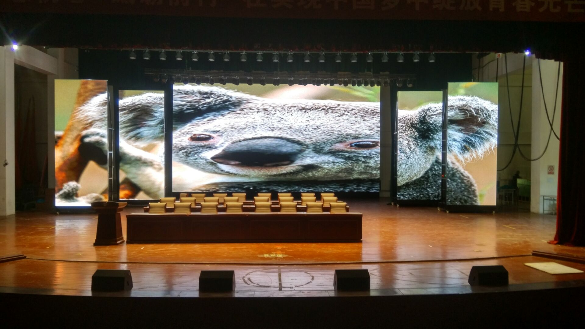 本項(xiàng)目佳惠科技為某學(xué)院舞臺(tái)區(qū)量身打造的戶內(nèi)全彩LED顯示屏,屏幕整體分為主屏和側(cè)屏兩個(gè)部分。主屏幕可用來播放動(dòng)畫與實(shí)時(shí)視頻,與舞臺(tái)兩側(cè)華麗側(cè)屏交相輝映,打造美輪美奐的視覺效果。佳惠戶內(nèi)全彩LED顯示屏色彩細(xì)膩豐富、色彩還原性好、畫面自然逼真,點(diǎn)亮后鮮艷的色彩鋪灑開來,猶如一幅幅美妙的畫卷,讓人陶醉。