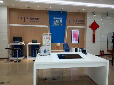 造型獨特的觸摸一體機供客戶進行自助信息查詢,提供整個網(wǎng)點的功能分區(qū)